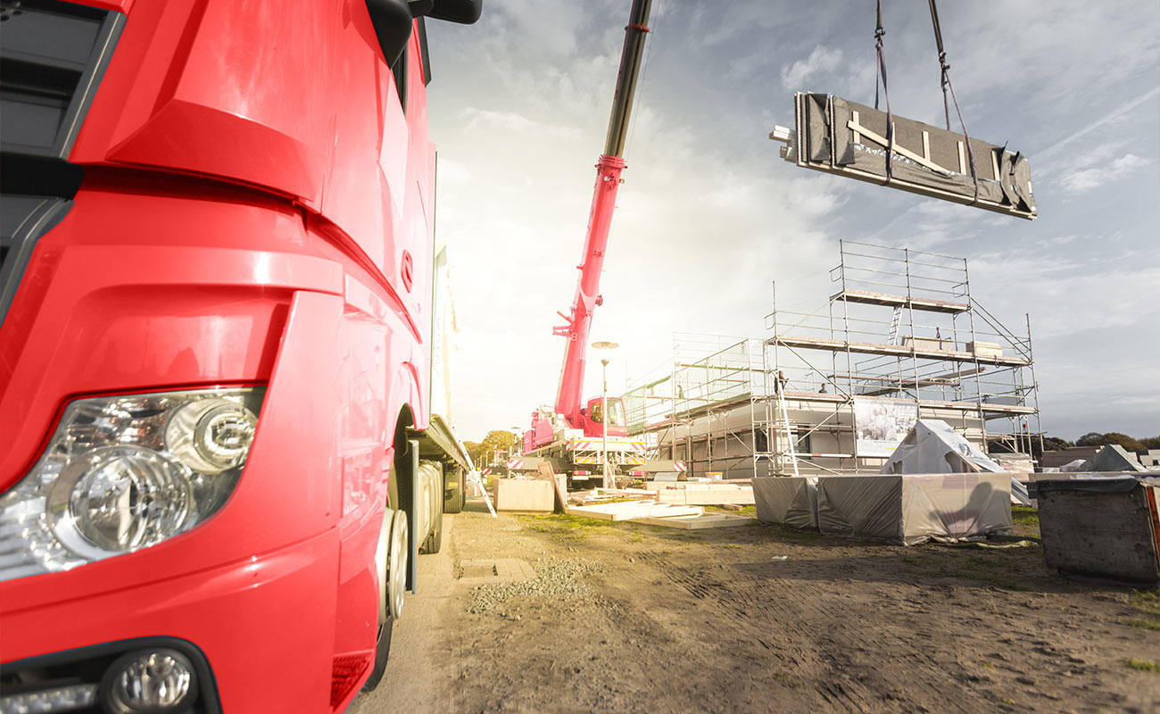 Betonfertigteile, Massiv-Fertigdecken, Mauerwerksfertigteile, Deckenelemente, Sonnenschutz, Schornsteine, Balkone, Zaunelemente, Wände, Carports oder Garagen – die zunehmende Größe und das Gewicht der zu transportierenden Bauteile erfordern echte Profis im Schwerlast-Transportwesen.